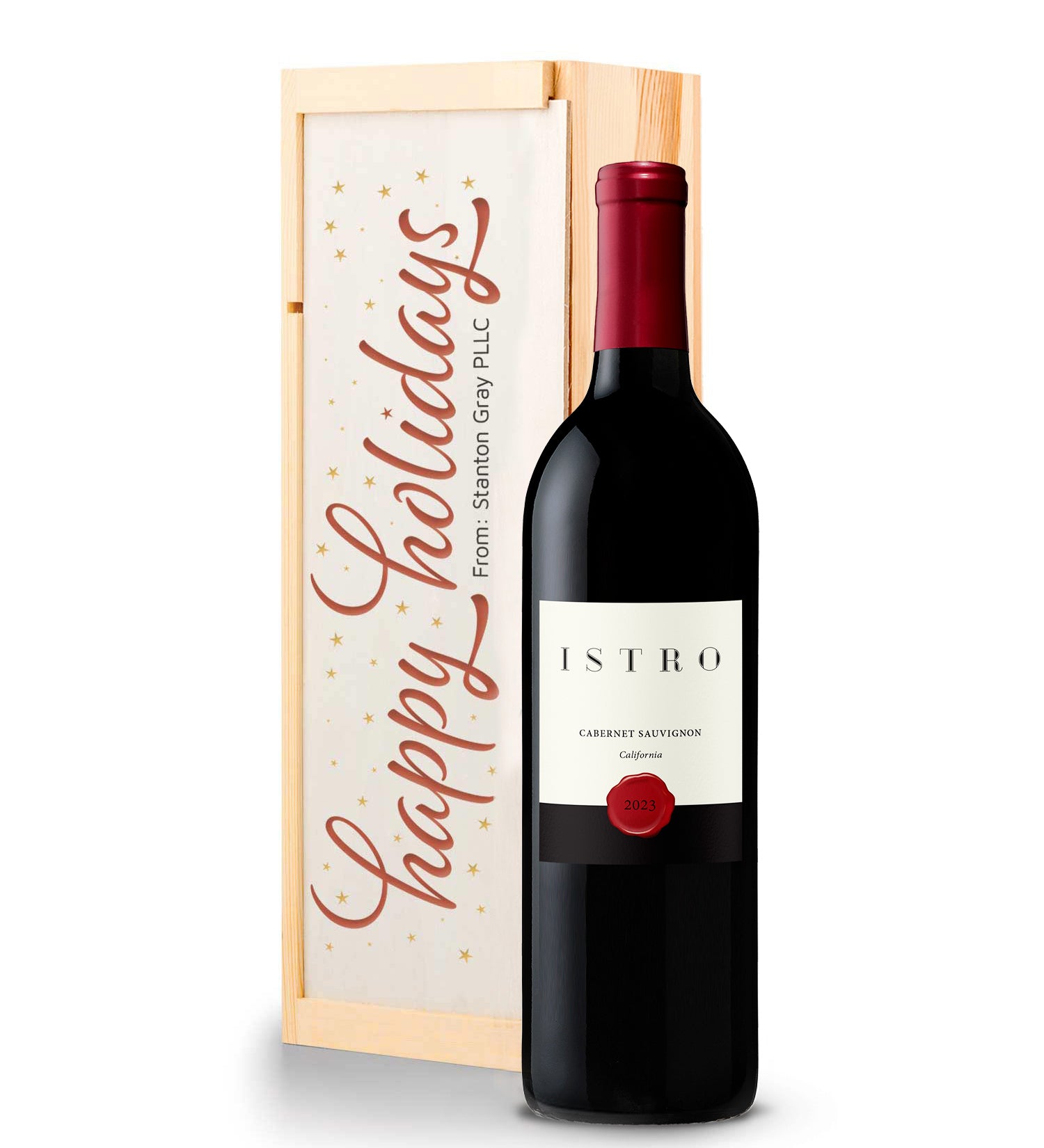 Spread the holiday cheer with our Happy Holidays Wine Crate, featuring the exquisite Istro Cabernet Sauvignon. This thoughtfully curated crate is the perfect gift for wine lovers, offering a delightful blend of elegance and festive spirit. Ideal for holiday gatherings, corporate gifting, or a personal treat, it’s designed to make your celebrations unforgettable.